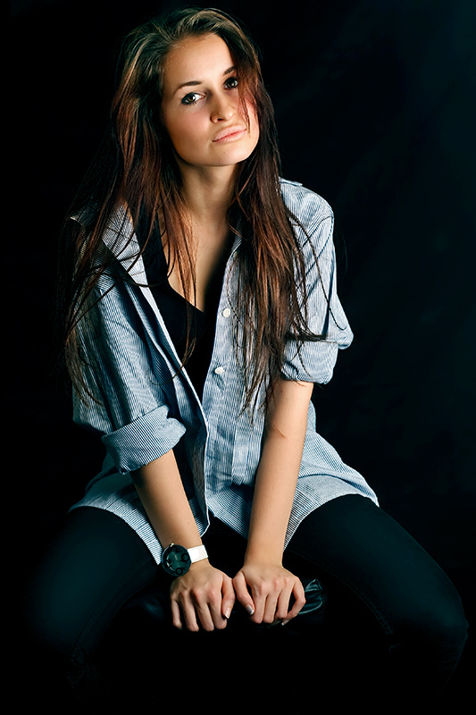 Usta można by jednak szminką podkreślić, co do oświetlenia, to brakuje kontry i z lewej modelka zlewa się z tłem.