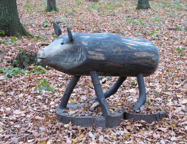 Fajny Dzik ktoś ma fajne pomysły rzeżbiac zwierzęta w lesie w ciemności można sie przestraszyć przy pełni Księżyca.