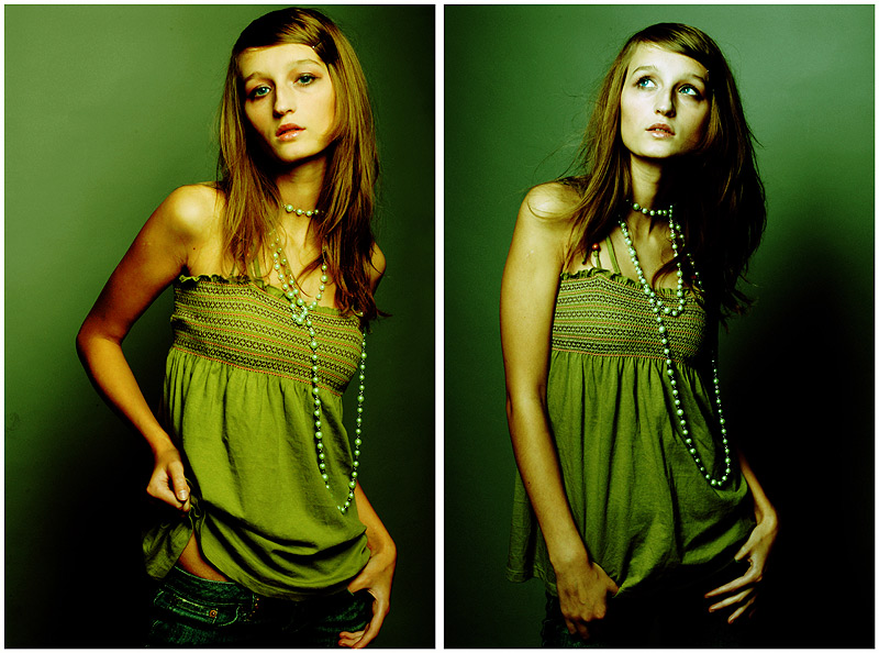 niedobre to jest, paskudna zielona dominanta, choc to po lewej jest cieplejsze kolorystycznie, a na tym po prawej cien na szyi zlewajacy sie z wlosami to juz zupelna porazka, sorry wywal to... :-(
