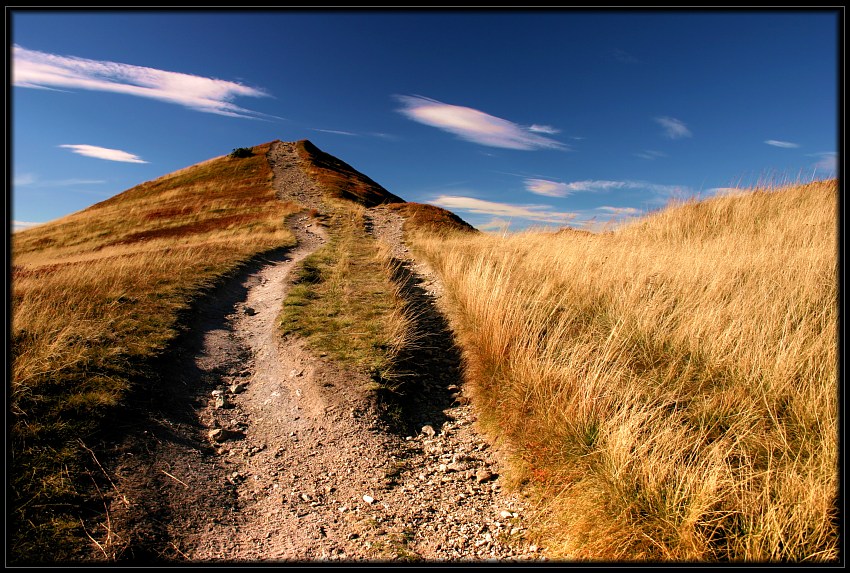 Jest wszystko co lubię, piękny motyw ścieżki, bardzo dobre jesienne barwy, super niebo, no i na końcu jakaś tam górka ;) Powodzenia na zaś...