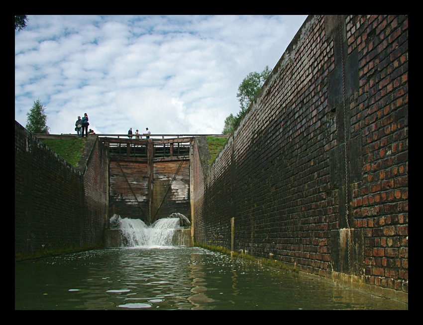 Przemku: podejść nie, co najwyżej podpłynąć :)) zdjęcie robione z kajaka; śluza Paniewo jest dwukomorowa, przed nami jest pierwsza komora, a jesteśmy w drugiej :)