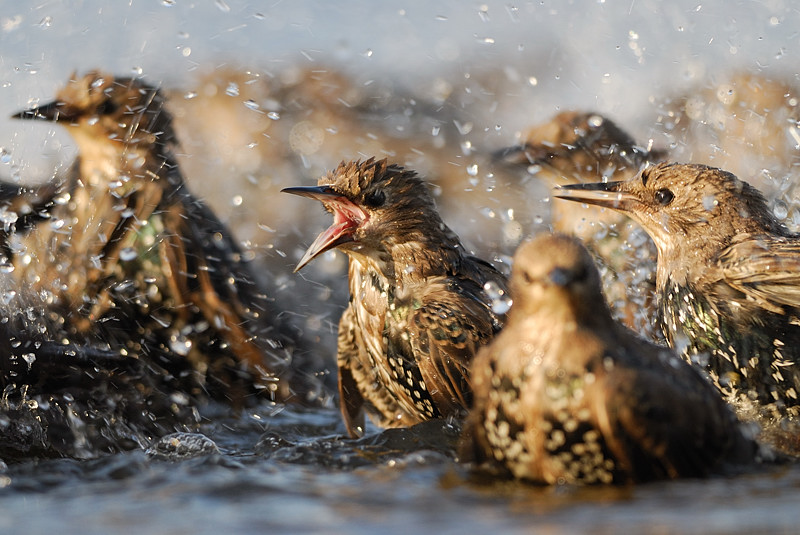 ... czyli szpaki w wieczornej kąpieli