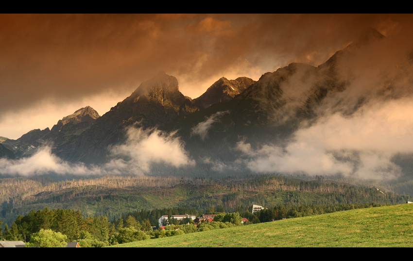 a mnie sie ten "tabaczkowy" ;o) kolorek podoba, a domy może by znikły w dolinie gdybyś zrobił parę kroków w tył .....?