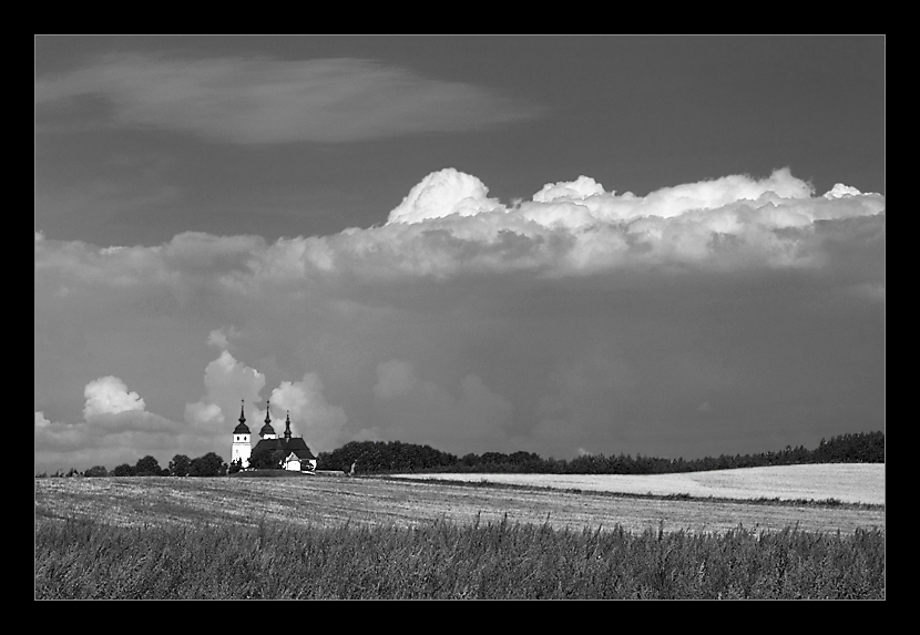 bardzo ładnie b&w ... fajnie gra wyrazista biel kościółka z bielą chmur u góry ... Bardzo fajny kadr
