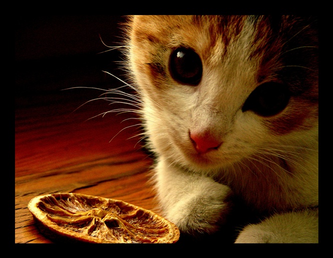 ta pomarancza tak jakos nie pasuje mi do kota,ale sam kot przyciąga spojrzenie,i choc troche ciemno to zdjecie mi sie podoba