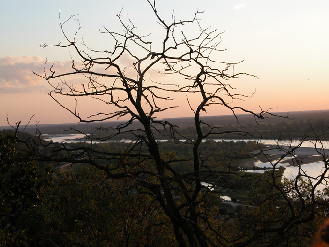 przycieta rzeka, przyciete drzewo , horyzont na srodku i w dodatku krzywy, kolory ładne za to