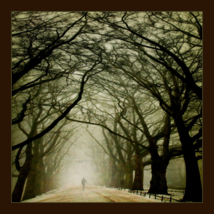 Bardzo poetyckie, jak u romantyków - pięknie rysuję się kontury drzew na tle światła, ta zanikająca dal w świetlistej mgle aż wciąga