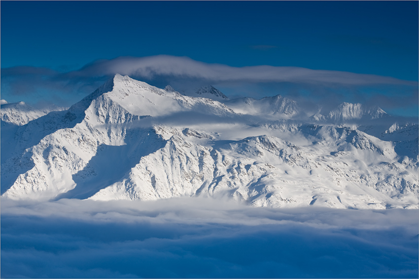 Świeżo w pamięci : Pizzo Tresero nad Santa Caterina (pod chmurami) widziane z okolic Bormio3000 :-) Pogody foto zazdroszczę. Przez 10 dni miałem tylko trochę wysokich chmur.