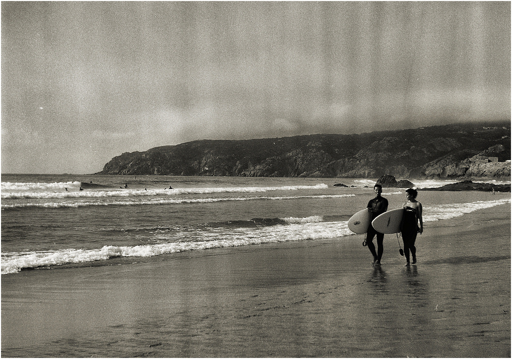 gdzieś na zachodnim krańcu Europy, wrzesień 2010, wieczór...; aparat: Start 66, obiektyw Emitar 1:3.5/75 (nr 19679), z ręki, czas 1/250 sek., f8.0, ISO 100 (Ilford Delta 100) skan z negatywu. [tak nieco w nawiązaniu do fot.: ___ http://plfoto.com/zdjecie,krajobraz,wieczorny-surfing,2171267.html ___]
