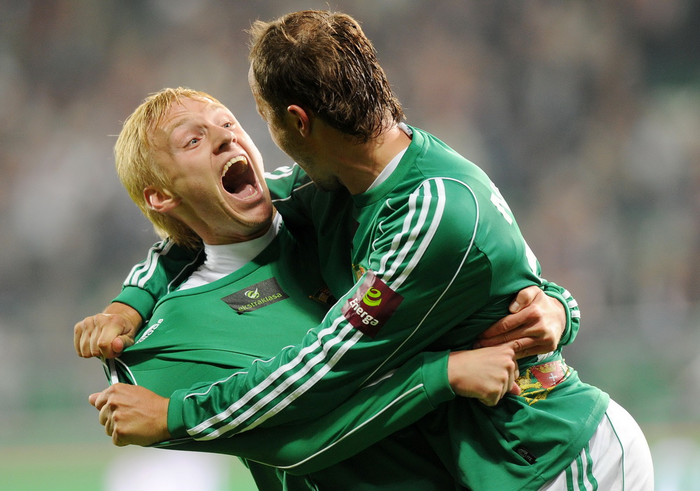 Radość piłkarzy Lechii Gdańsk po zdobyciu jednej z bramek podczas meczu Legia Warszawa - Lechia Gdańsk