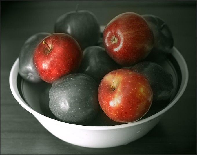 Fajne, ale robiac desaturacje wolalbym zostawic tylko jedno jablko czerwone...to z dluzszym ogonkiem - taka "czarna owca" wsrod pozostalych)