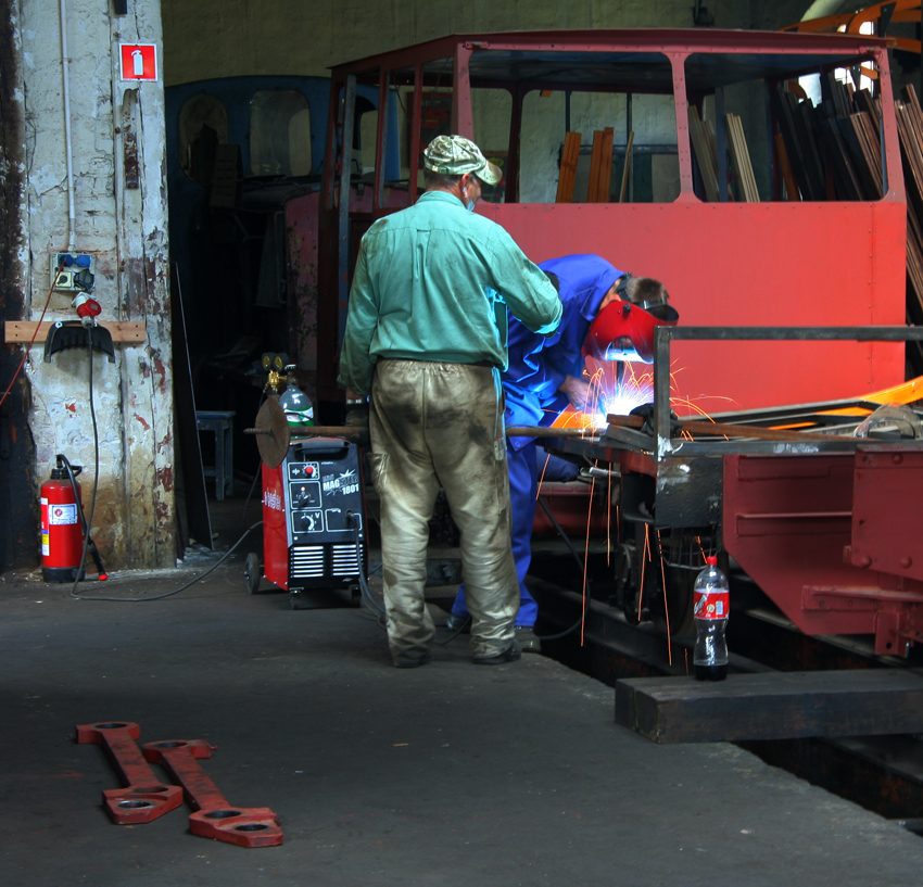 to już trochę nowocześniejsza spawarka, te stare to dopiero dawały iskry ;)
