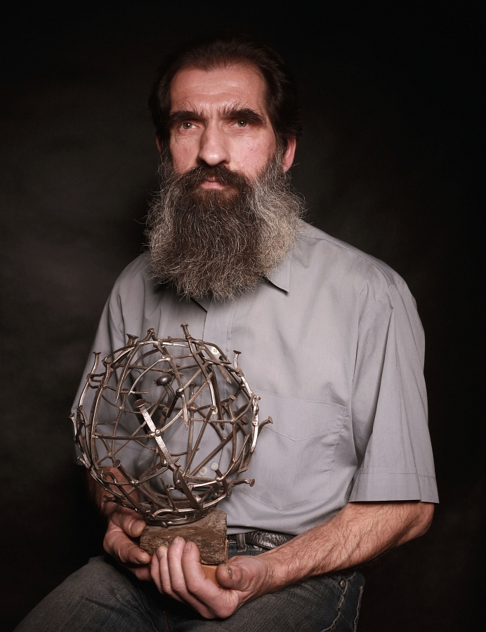 Zawsze podkreśla,że pierwsze szlify zdobywał w zakładzie Stefana Kromy, którą nazywa starą szkołą mistrza.Tam nauczył się ręcznego wykonywania mebli, ich intarsjowania.O swoim dzieciństwie mówi"Szczerze mówiąc nie pamiętam niczego innego poza majsterkowaniem.Począwszy od lepienia w glinie domków,przez kompozycje wydłubane w korze,po modele żaglowców, na miniaturach statków kończąc.Z drewnem i innymi materiałami pracuje od wielu lat, swoja pasją,dzieli się z dziećmi podopiecznymi świetlicy terapeutycznej,w której prowadzi zajęcia artystyczne.W swojej pracowni oddaje się rzeźbieniu aniołów kilka wystaw w całym kraju. Były też drewniane formy abstrakcyjne, czasem łączone z metalem,plastikiem, szkłem.Ostatnia seria prac,którą zaskoczył wszystkich to Drugie Życie Metalu-wykonana ze starych gwoździ ,elementów metalowych, których funkcje użytkowe przeminęły.Ze starych okuć, skobli,śrub,zawiasów i innych metalowych detali,pozyskanych w czasie remontów starych domów,kościołów ze spalonego pałacu w Wąsowie,wykonał figurki nawiązujące do archetypicznych postaci naszej kultury. Metalowe wyobrażenia m.in.Chrystusa,Wieży Babel,Don Kichota, Stańczyka itd Prace są jakby metaforą dwóch etapów,jakie w życiu przeszedł. Na zdjęciu z Atlasem, dźwigającym na barkach kulę ziemską
