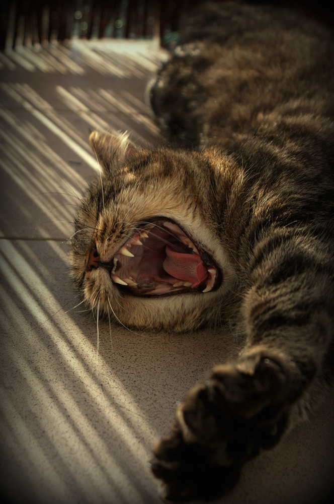 podobny do mnie, leży, ziewa i się przeciąga
