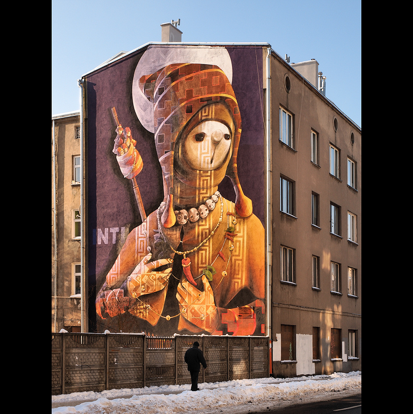 autorem tego Muralu jest INTI z Chile, malunek przedstawia tradycyjny ubiór z tego państwa.