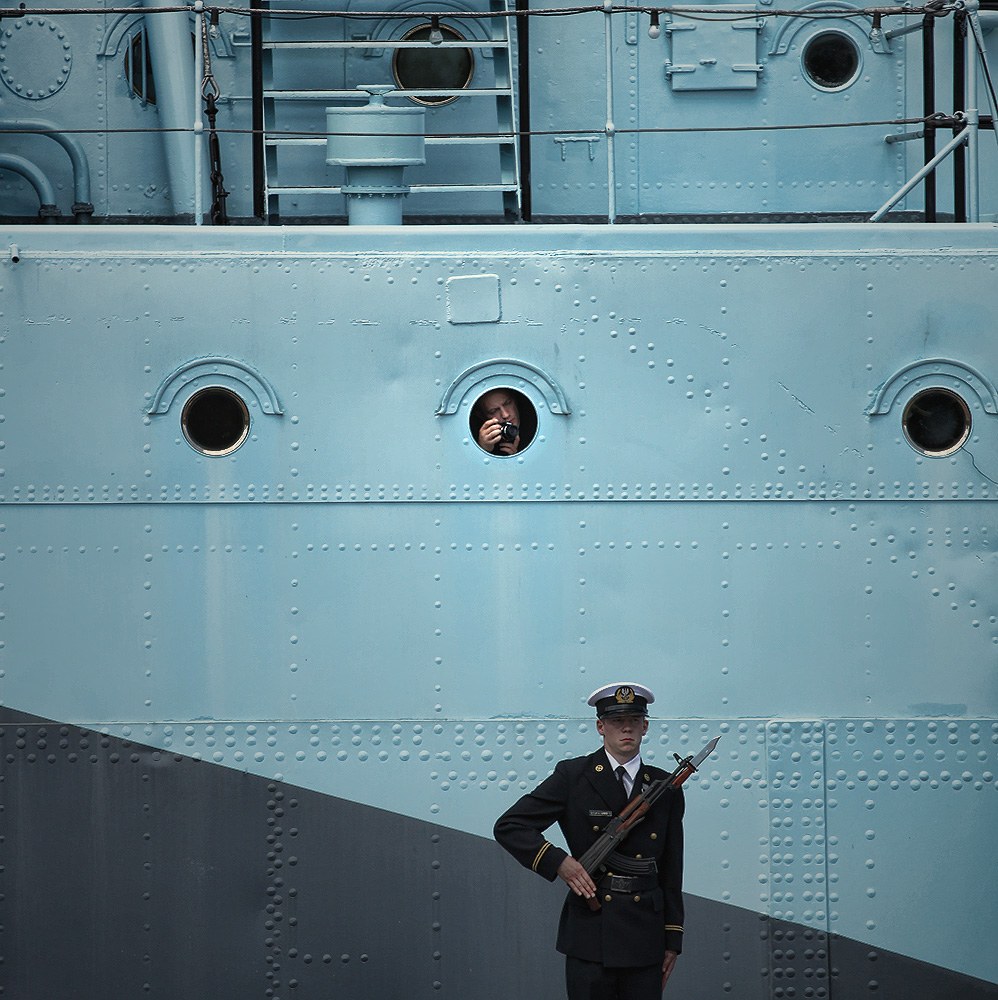 Jak widać próbuje coś sfotografować z bulaja ORP Błyskawica.