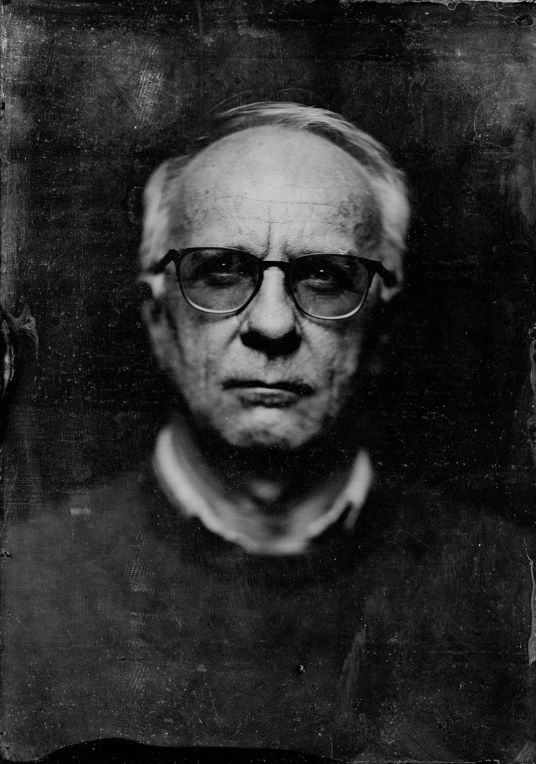Może to niezgodne z regulaminem, ale korci mnie by to zdjęcie pokazać, bo choć ja nie jestem autorem tego zdjęcia, nie ja bowiem zdjąłem dekielek z obiektywu, ale przy takim czasie naświetlania trudno byłoby o autoportret, ale ja jestem na tym zdjęciu, jedyne zdjęcie z tych warsztatów, które zostało zawerniksowane i nie zostało porysowane w transporcie, dekielek zdjął kolega, czas naświetlania 6 sekund, oświetlenie ledowe + blenda, kamera wielkoformatowa Globica, obiektyw Petzval