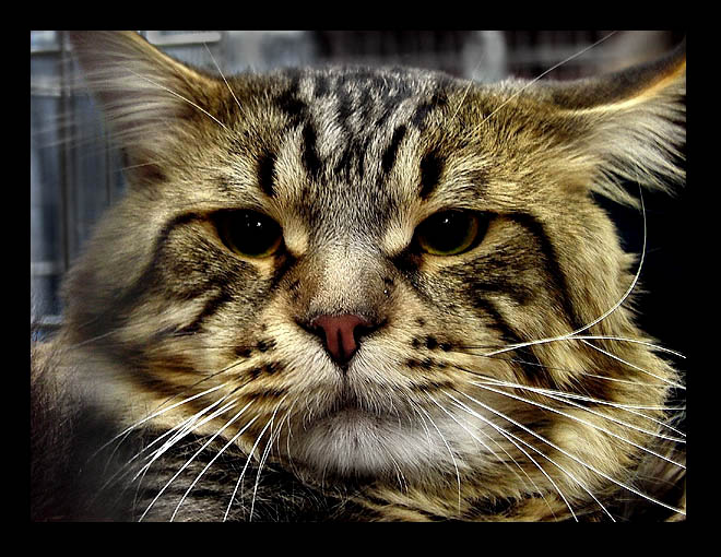 Ten byl wyjatkowo okazaly (10kg razem z futrem:-) Sam zajmowal pol klatki, wiec nie mial pola manewru i spokojnie sobie pozowal...