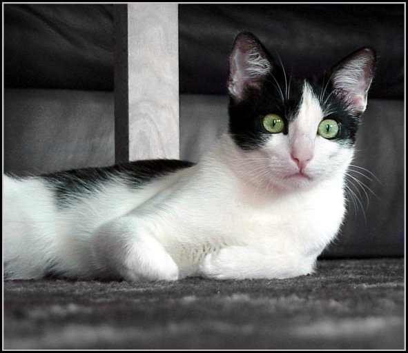 :) cięcie wynikło z tego, że obok stał fotel i część kotka była za niego schowana. Christof: żeby nie było nieporozumień: kotek zrobił takie oczka jak zobaczył idącego w jego stronę żółwia którego również posiadam :]