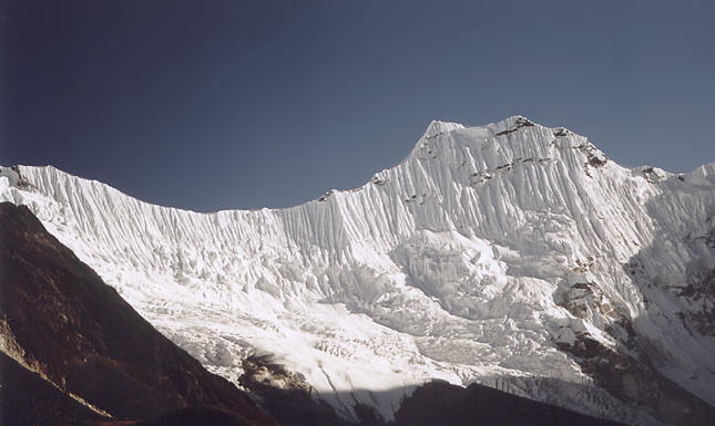 Zdjecie robione z moreny lodowcowej w dolinie Chukhung Ri, 4950 mnpm. Amadablam ma 6812, ale jej szczyt jest z prawej, tutaj niewidoczny.