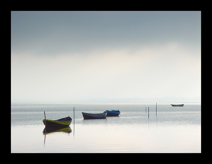 miłe, nastrojowe zdjęcie, fajna kompozycja łódek i prawie zatarta linia horyzontu :)