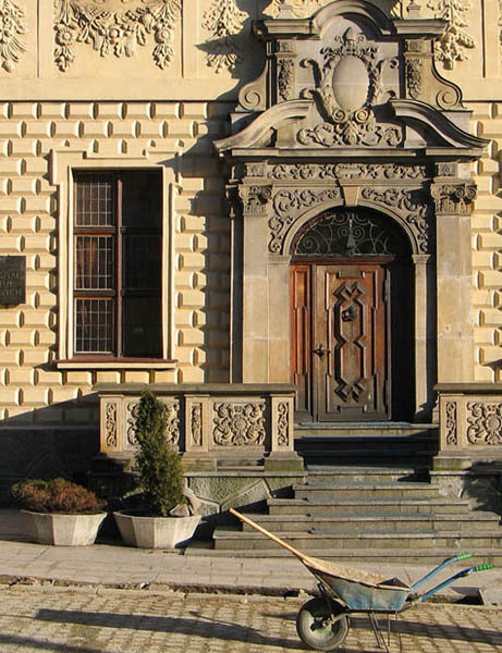 Portal jak portal ;-) Albo to w Toruniu pięknych portalów nam mało?! Jest Ci ich u nas pod taki dostatek, że gdybym chciał tylko je focić to by mi na to pół życia zeszło... . No właśnie! Dlatego też od samego portalu bardziej interesują mnie jego interakcje z otoczeniem. Taczka jest w tym celu cudownym narzędziem. - Popatrzcie na nią, to ona jest cichą bohaterką tego zdjęcia! Skromna, bezpretensjonalna taczka.. . - Pokochać piękny barokowy portal?! Jakie to banalne ;-)
