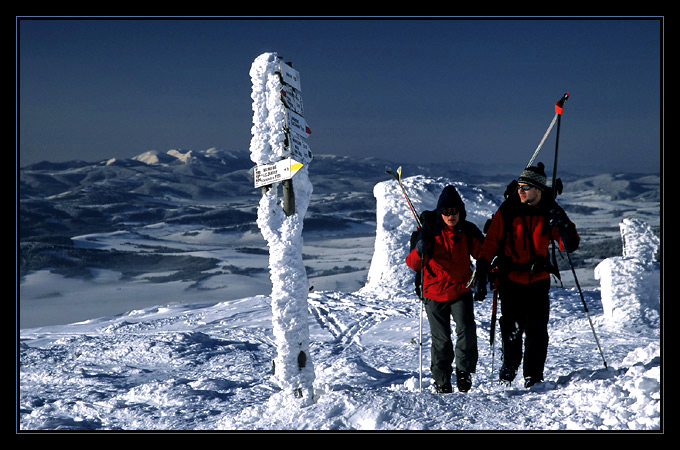 skoda ze nartki w plecaku ( ale to z punktu mojego i niefotograficznego) .... troszke za duzo sie dzieje ( ludzie, tyczki, drogowskazy, mala fatra z tylu ) .... cosik robi sie ze mnie asceta ..... :)