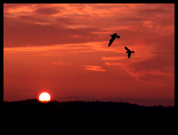 zachodzik ladnie uzupelniony ptaszkami. zestawienie czerwieni z czerniami dobrze wyglada. kadr poukladany b fajnie