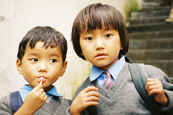 Tybetanskie maluchy tuz po szkole (McLeod Ganj, Indie)