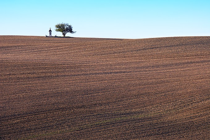 bardzo fajne miejsce na fotki - taka kapliczka pod samotnym drzewem na środku zaoranego pola... pole też jakoś tak zbyt porządnie zaorane jak na PL ;-) myślę, że trochę uroku dodałby temu zdjęciu polarek do nieba...