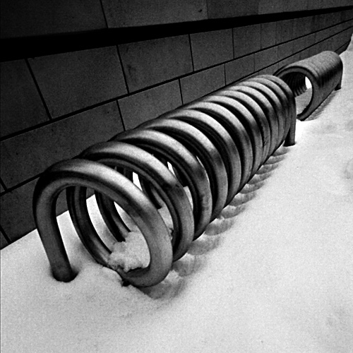lubię te spiralne stojaczki, kadr ok, ziarenko fajne, jakaś rowerowa pozostałość by się przydała :D