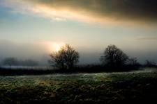 Pola i wzgórza wyglądają jak lekko sfatygowane sztruksowy materiał, a zima dodaje taki efekt jak przykrycie tego materiału folią :)