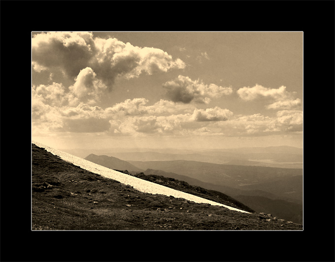 ładnie widać pasma gór ciągnące się wgłąb zdjęcia, ten biały pas mi trochę przeszkadza, ogólnie ładnie