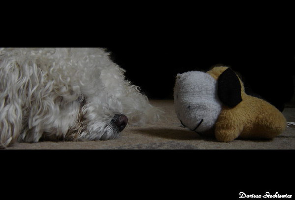 Niestety byly problemy z pieskiem - nie chcial byc fotografowany :P sie wiercil i wiercil i to bylo chyba najlepsze ujecie z kilkudziesieciu zdjec, tylko ze dziwnie by to wygladalo gdybym dal gorna czesc pieska.