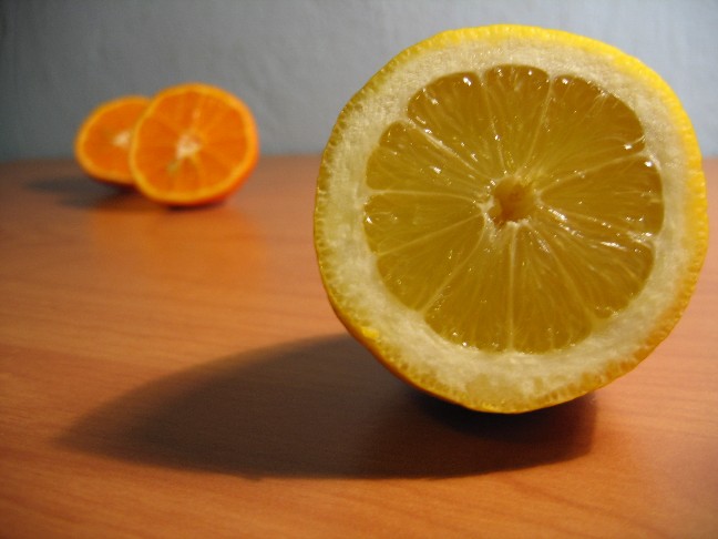 No światło faktycznie jest nie bardzo i chyba balans bieli. Co do ostrości to się nie będę czepiał bo sam robię EF-S 18-55mm i wiem że pewnych rzeczy się nie przeskoczy, zdjęcia wychodzą mydlane i tyle, ale tu chyba lepsze światło by pomogło trochę, albo obiektyw troszkę dalej od cytryny. Co do oryginalności tego zdjęcia to nie przesadzajmy, jest typowe, ale mi to nie przeszkadza, sam robię typowe, nie bawię się w "artystę". A w skrócie - fajne studia nad GO, mogło wyjść lepiej, ale nie wyszło źle. Pozdrawiam.