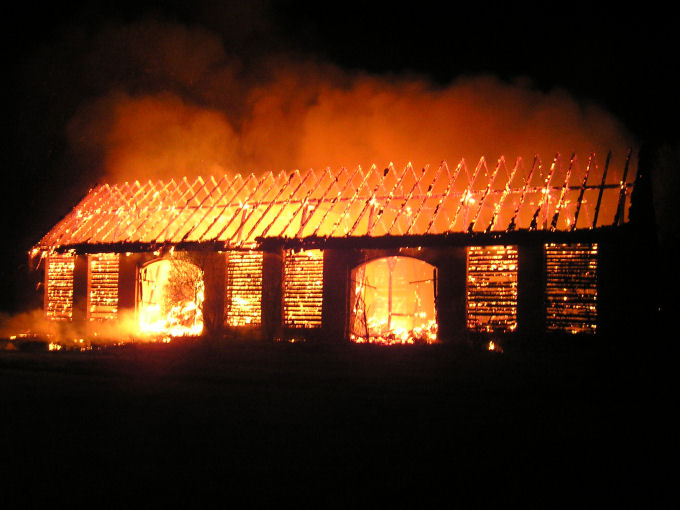 Pożar w Boroszowie (gm. Olesno Sl.). Początek akcji gaśniczej.