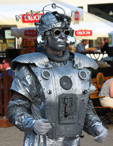 to jest jeszcze nic.. na majorce w stolicy co 50m stoi koles w innym kolorze i innym stylu ubrany.. np caly brunatny kowboj, caly bialy ktostam, caly zielony atleta z roza.. etc etc ;] tak ze ten robot to akurat cinko wypada ;]]]]